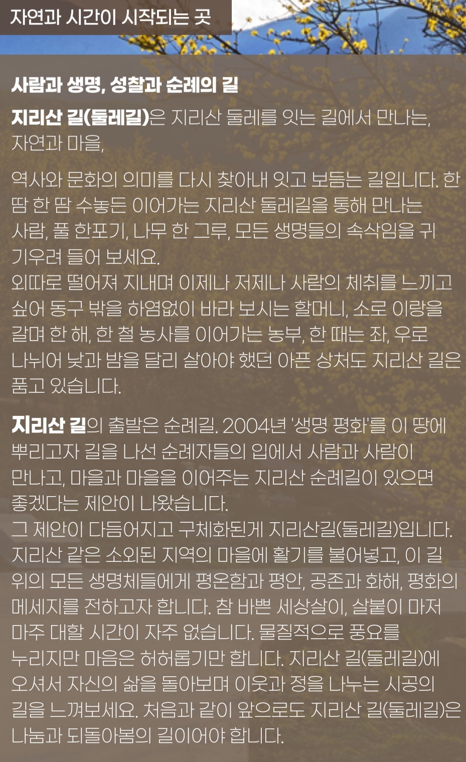 지리산 둘레길은 사람과 자연을 연결하는 길입니다.